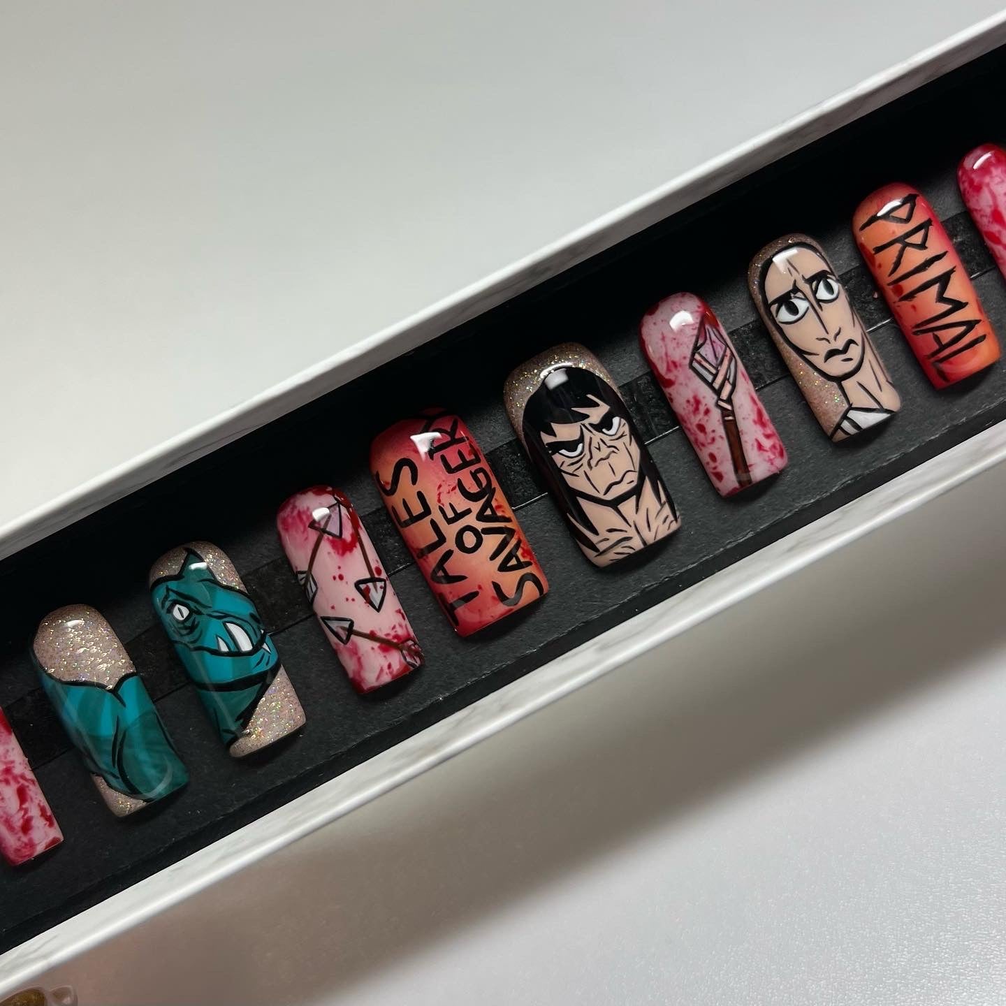 Reusable, hand painted, 100% gel press-on nails.